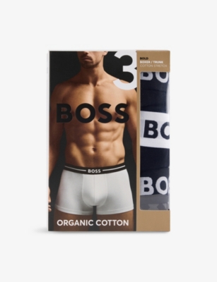 BOSS ONE x David Beckham Logo-Waistband Pack of Three Stretch-Cotton Trunks- Price:€58.00
