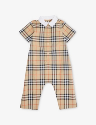 Check Appliqué-Logo Cotton Romper 1-12 months