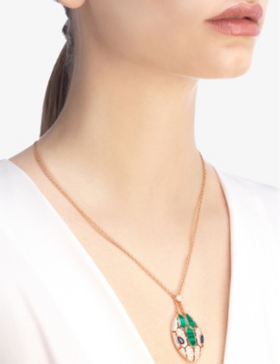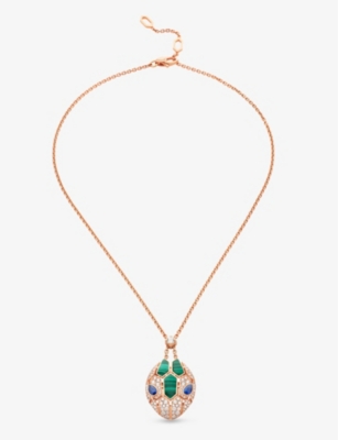 Serpenti 18ct rose-gold, 1.34ct diamond, sapphire and malachite pendant necklace- Price:€36,400.00
