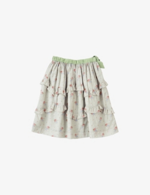 Azalea rose bouquet-print cotton skirt 3-12 years