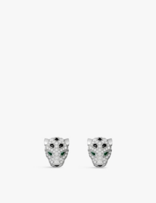 Panthère de Cartier 18ct white-gold, 0.68ct round-cut diamond and onyx earrings- Price:€16,400.00