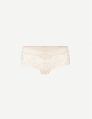 Whether you prefer full-back or something light, this Parisian brand gives you the solution. Chantelle hipster briefs come with details such as delicate mesh, floral lace trims or grosgrain bows to add pizzazz. These briefs are pretty, practical and available in classic colourways such as black and ivory.