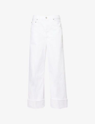Ayla folded-hem wide-leg mid-rise denim-blend jeans