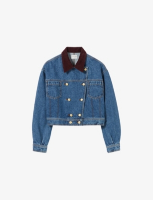 CLAUDIE PIERLOT: Contrast-Collar Double-Breasted Cropped Denim JacketCLAUDIE PIERLOT: Contrast-Collar Double-Breasted Cropped Denim Jacket