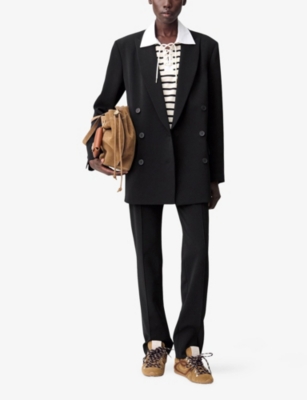 CLAUDIE PIERLOT: Peak-Lapel Double-Breasted Stretch-Woven BlazerCLAUDIE PIERLOT: Peak-Lapel Double-Breasted Stretch-Woven Blazer