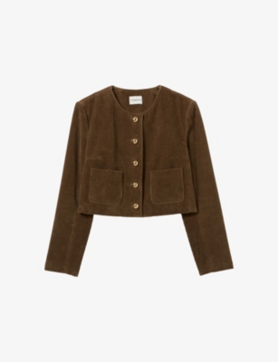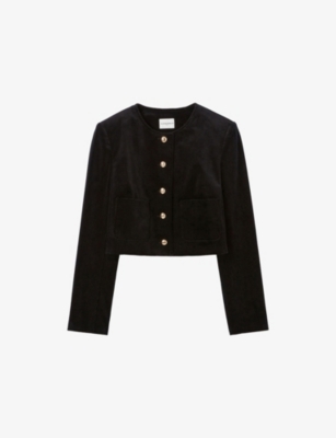 CLAUDIE PIERLOT: Boxy Round-Neck Stretch-Velvet JacketCLAUDIE PIERLOT: Boxy Round-Neck Stretch-Velvet Jacket