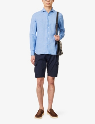 Short-Sleeve Logo-Embroidered Linen Shirt