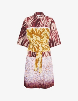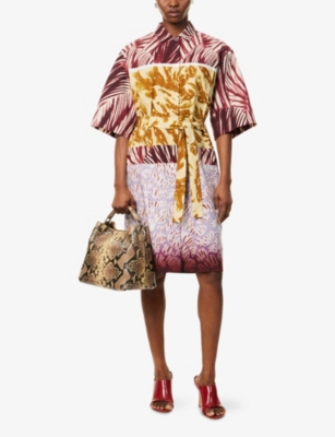 Abstract-Print Belted Cotton-Poplin Midi Dress