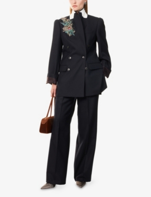 Baftan Stitch-Embellished Double-Breasted Wool Blazer