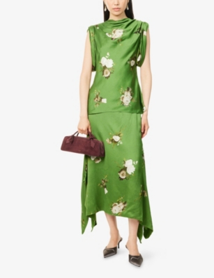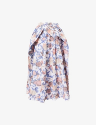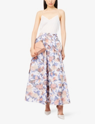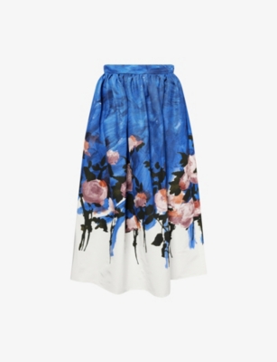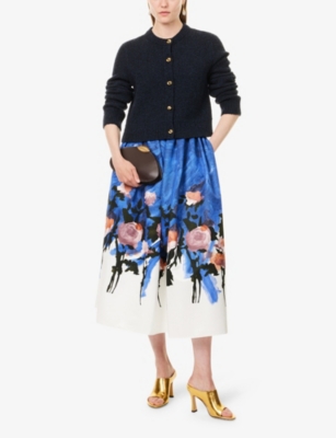 Flower-Embroidered A-Line Cotton-Blend Midi Skirt
