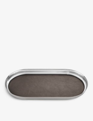 Manhattan stainless steel and leather tray 35x18cm