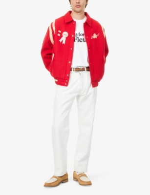 Logo-Embroidered Badge Brushed Wool Varsity Jacket