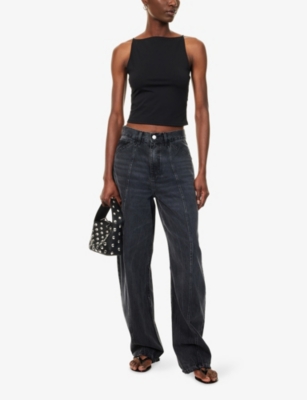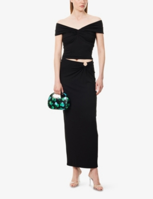 Ruched Cropped Stretch-Woven Top
