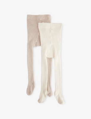 Ribbed-Knit Pack of Two Cotton-Blend Tights 2 Months – 4 Years