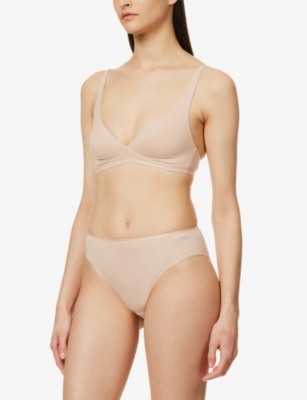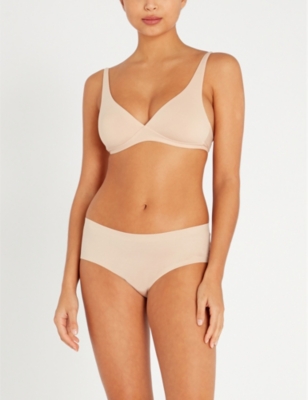 Just run your fingers across these super-soft fabrics and you'll see how the original values hold true today. Cotton, silk and satin are all used for their gentle feel against the skin and the clever breathable qualities that put your comfort first. You'll notice simple cuts and clean lines, with a dash of lace detailing throughout the collection. Many of the briefs, bras and camisoles in our selection of Hanro lingerie have a sleek, seamless style so they slip beneath clothing for a flawless finish.