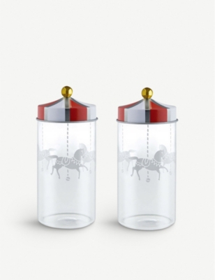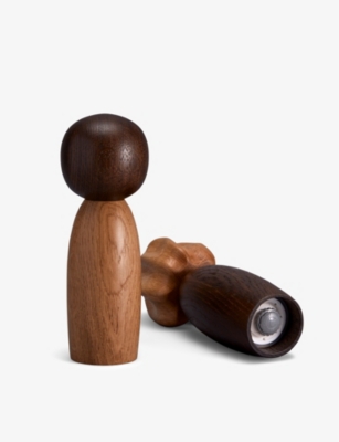 Add the final flourish to your dinner table with our designer salt and pepper shakers. Our collection includes sleek and modern choices (with some adjusting for fine or coarse flakes), robust grinders in understated designs and playful items that add a dash of fun to mealtimes. When it comes to materials, there's plenty to choose from in our selection of salt and pepper shakers. Wooden mills feel traditional and homely, while porcelain creates more of a contemporary finish. Look out for gleaming stainless steel that matches your silverware or clear glass for a hint of refinement.