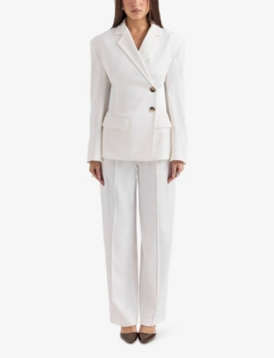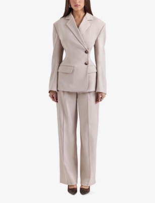 Georgia Oversized-Shoulder Stretch-Woven Blazer Dress