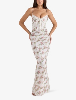 Calista Floral-Print Body-Con Stretch-Mesh Maxi Dress