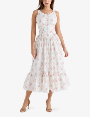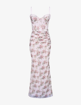 Clarabelle corseted floral-print stretch-woven midi dress