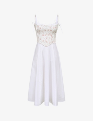 Samaria corset-top A-line stretch-cotton midi dress