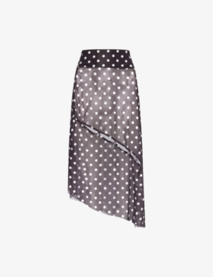Polka-Dot Asymmetric Stretch-Woven Midi Skirt