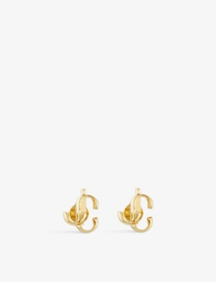 JC logo-embellished gold-toned brass stud earrings
