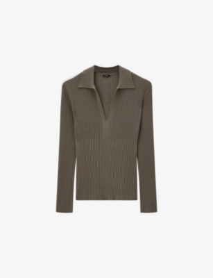 JOSEPH: Ribbed V-Neck Knitted Polo TopJOSEPH: Ribbed V-Neck Knitted Polo Top
