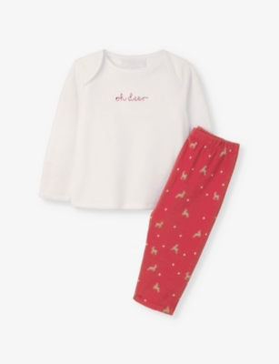Oh Deer long-sleeve embroidered velour organic cotton-blend pyjamas 0-24 months- Price:€29.50