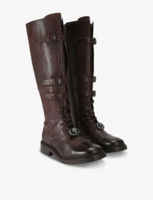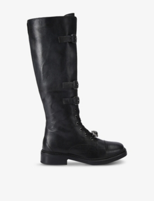Monument strap-embellished leather knee-high boots- Discount price:€220.00