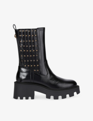 Chelsea eagle-embellished heeled leather boots- Discount price:€148.00