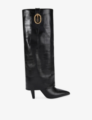 Fold-Over Tall Leather Knee-High Boots- Discount price:€270.00