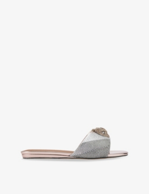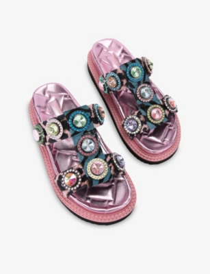 Key to the collection is that famed KG rainbow, representing the brand's best virtues - joy, hope and inclusivity. You'll see it throughout our picks - twinkling from a pair of Kurt Geiger crystal sandals, perhaps, or woven into the strap of some glittery flats. There are stilettos too, hewn from shiny patent leather or covered with patterned fabric. When comfort is paramount because you're catching up with friends or indulging in some downtime, opt for a set of quilted sandals that gently hug your feet.