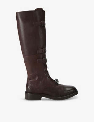 Monument strap-embellished leather knee-high boots- Discount price:€220.00