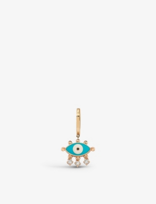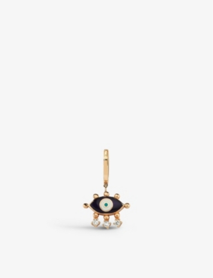 Selda Jewellery Evil Eye 14ct rose-gold, 0.08ct diamond and enamel single stud earring- Price:€775.00