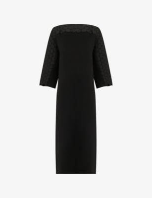 Quilted Embroidered Wool-Blend Midi Dress