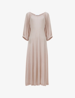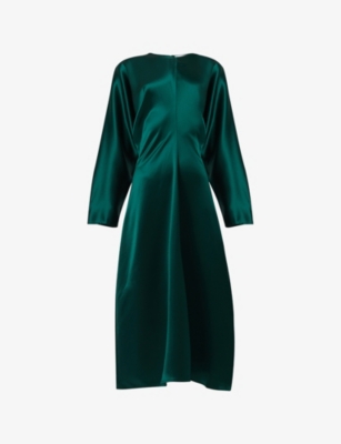 Batwing-Sleeve Gathered Stretch-Woven Midi Dress