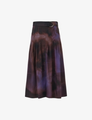 Printed Belted Cotton Midi Skirt