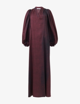 Abstract-Print Balloon-Sleeve Cotton Maxi Dress- Discount price:€88.00