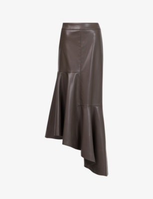 Gathered-Pleat Asymmetric-Hem Woven Midi Skirt- Discount price:€39.00