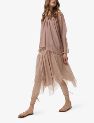 Asymmetric-Panel High-Waist Chiffon Midi Skirt- Discount price:€70.00
