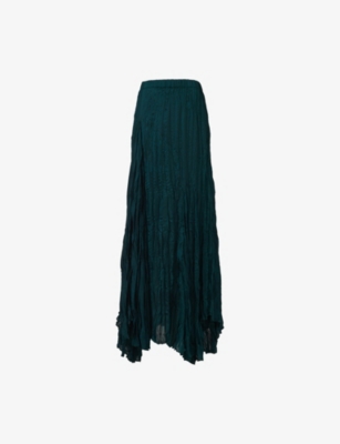 High-rise asymmetric-hem pleated woven midi skirt- Discount price:€51.00