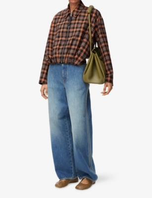 Floral-Print Wide-Leg Mid-Rise Denim Jeans