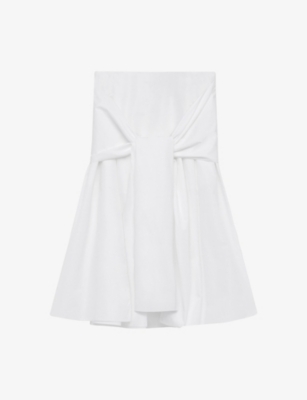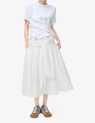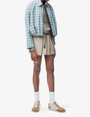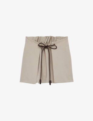 Gathered Tie-Belt Cotton-Silk Woven Mini Skirt