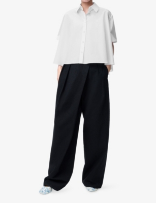 Loewe women’s tops blur the lines between fashion and art bringing together sculptural shapes, unexpected textures, and refined simplicity. From crisp shirting with avant-garde twists to fluid knits and deconstructed silhouettes, each piece reflects the house’s commitment to innovation, craftsmanship, and effortless expression.