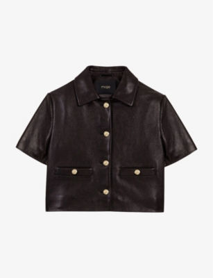 MAJE: Cropped Side-Pocket Leather JacketMAJE: Cropped Side-Pocket Leather Jacket