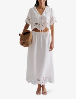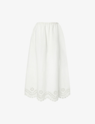Chara Elasticated-Waist Broderie-Anglaise Linen-Blend Maxi Skirt