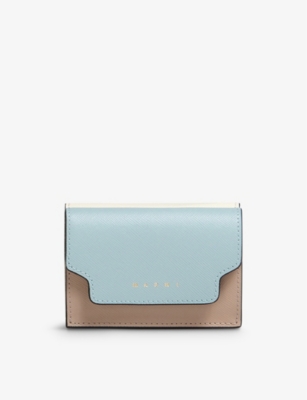 Logo-print leather trifold wallet