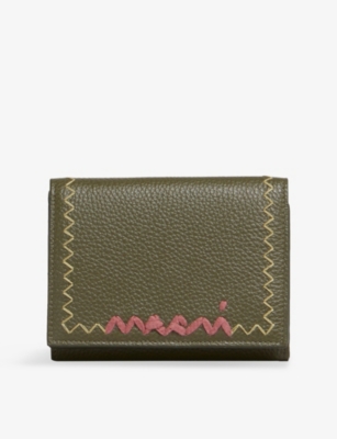 Embroidered-Logo Tri-Fold Leather Wallet