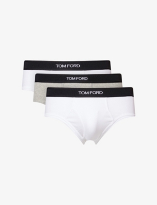 Logo-Waistband Pack-Of-Three Stretch-Cotton Briefs