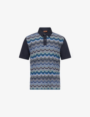 Chevron Knitted-Panel Cotton-Jersey Polo Shirt